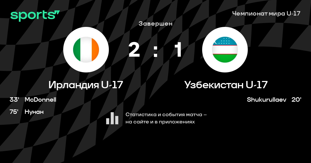 Трансляция Ирландия U-17 - Узбекистан U-17