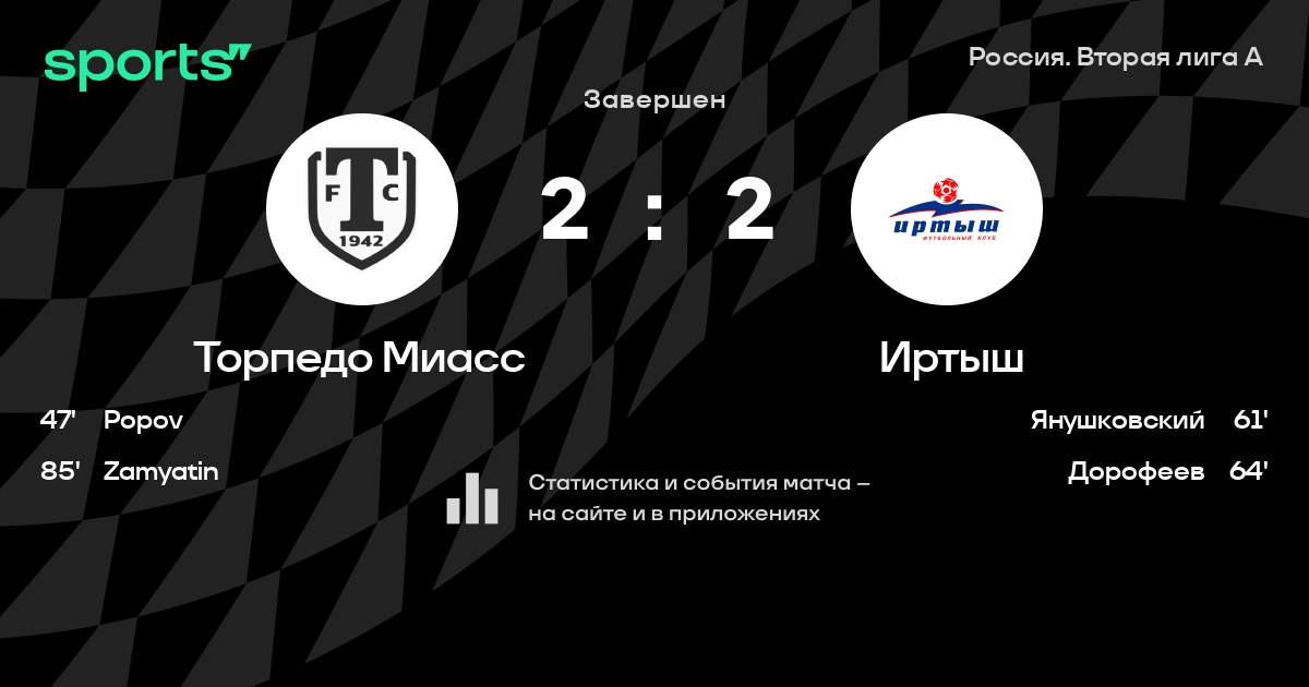 Результат прошлой игры в турнире «Россия. Вторая лига А»: ПФК Кубань – Торпедо Миасс 2:1. Торпедо Миасс не может выиграть в 4 последних матчах в рамках турнира «Россия. Вторая лига А». В последних 5 играх Торпедо Миасс забивает 3 голов. В последних 5 играх Торпедо Миасс пропускает 3 голов.