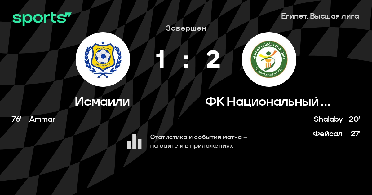 Результат прошлой игры в турнире «Премьер-лига»: ФК Национальный банк Египта – Вади Дегла 1:1. После 7 туров ФК Национальный банк Египта набирает 8 очков и занимает 15 место в турнире. Лучший бомбардир команды – Осама Фейсал: он забил 2 в 9 матчах. ФК Национальный банк Египта не проигрывает в 5 последних матчах в рамках турнира «Премьер-лига». В последних 5 играх ФК Национальный банк Египта забивает 5 голов. В последних 5 играх ФК Национальный банк Египта пропускает 2 голов.