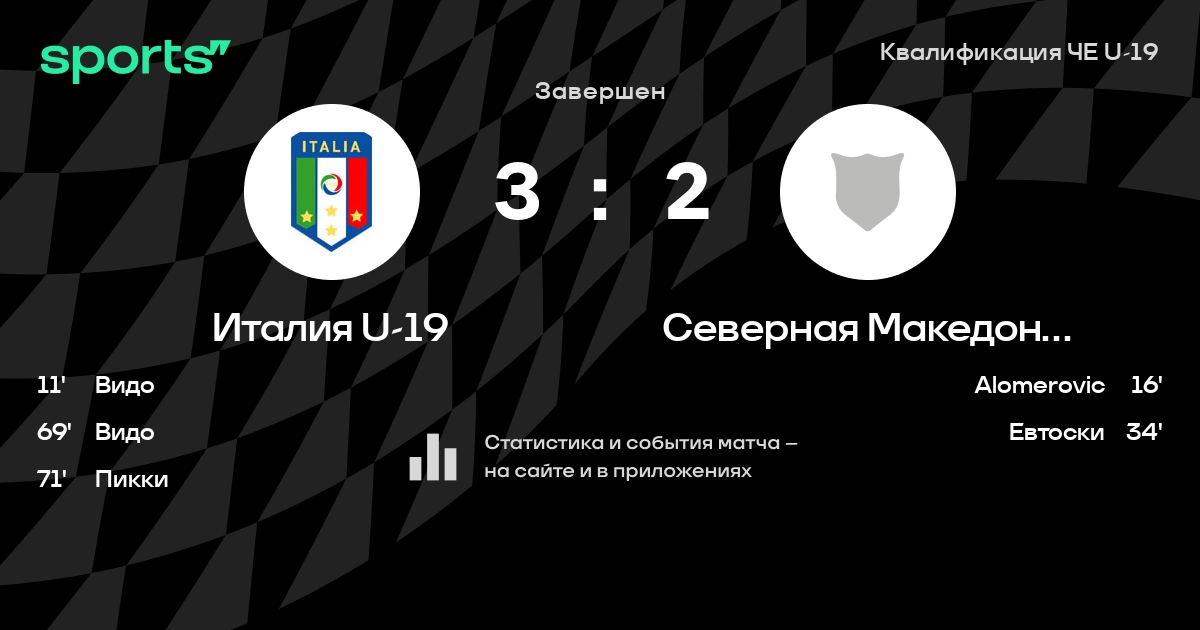 Италия U-19 – Северная Македония U-19: коэффициенты