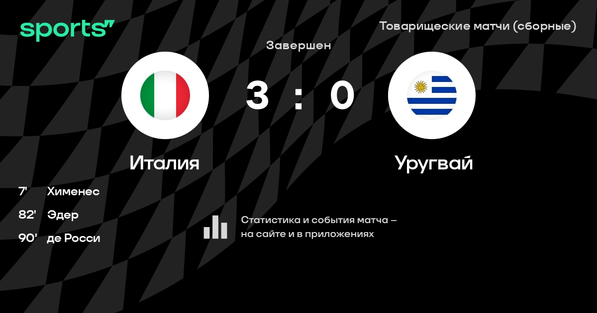 Доннарумма - Спинаццола, Бонуччи, Бардзальи, Дармиан - Инсинье, Маркизио, де Росси, Кандрева - Иммобиле, БелоттиЗапасные: Буффон, Скуффет, Астори, Кьеллини, Конти, Д`Амброзио, Феррари, Монтоливо, Пеллегрини, Бернардески, Эдер, Эль-Шаарави, Габбьядини