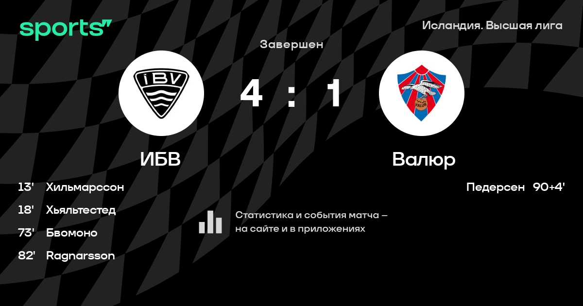 Запытовски - Кристинссон, Mattias Karl Olof Edeland, Tomić, Hlynsson - Hermann Þór Ragnarsson, Baxter, Хильмарссон, Valor Martínez, Хейдарссон - ХьяльтестедЗапасные: Arnarsson, Nokkvason, Бвомоно, Pettersen, Gunnarsson, Erlingsson, Gautason, Торвардарсон