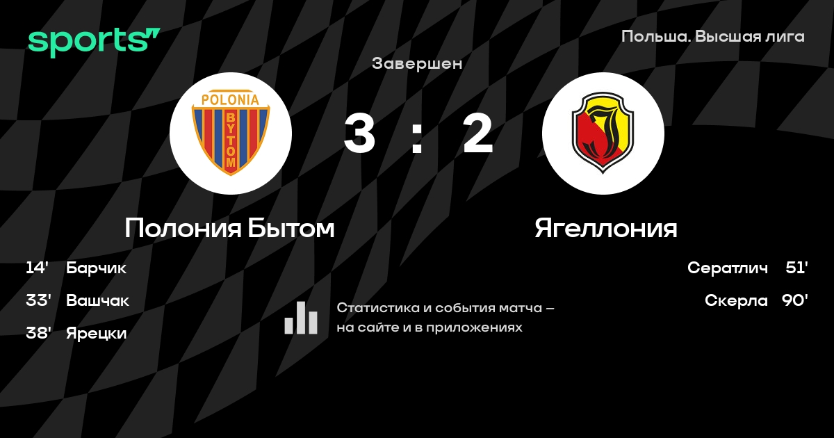 | 4 | Ягеллония | 30 | 14 | 6 | 10 | 38 | 32 | +6 | 48 | ||