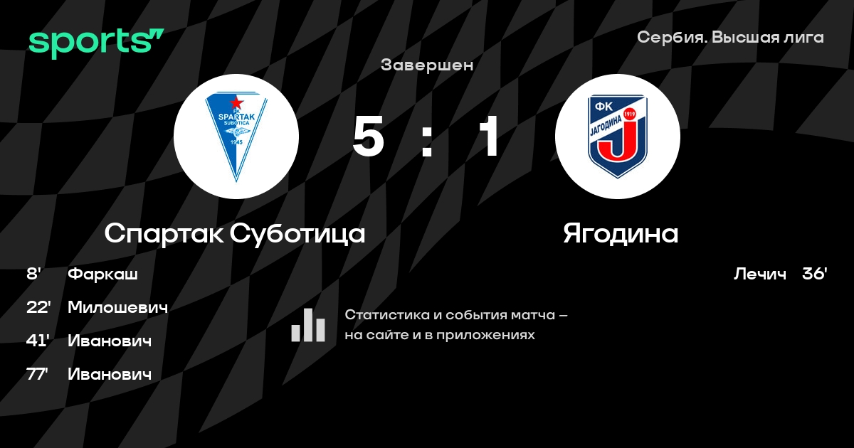 Спартак Суботица - Ягодина: составы на матч