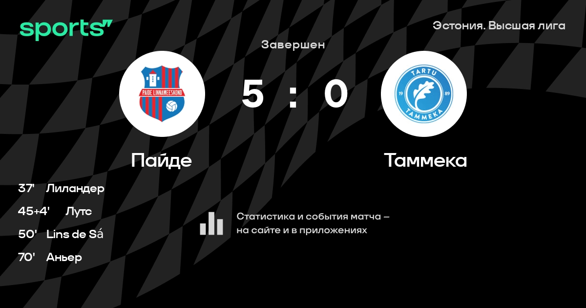 Результат прошлой игры в турнире «Высшая лига»: Курессааре – Пайде 1:1. После 31 туров Пайде набирает 59 очков и занимает 4 место в турнире. Лучший бомбардир команды – Мартин Миллер: он забил 8 в 33 матчах. Пайде пропускает в 3 последних матчах в турнире «Высшая лига». В последних 5 играх Пайде забивает 8 голов. В последних 5 играх Пайде пропускает 7 голов.