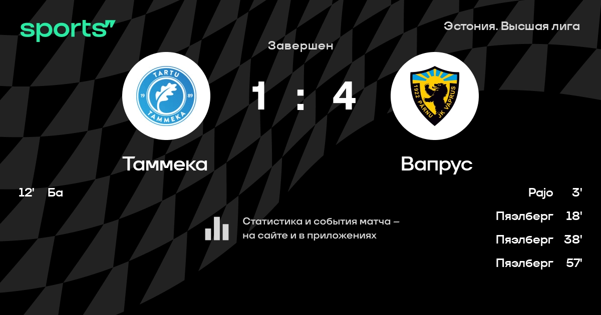Результат прошлой игры в турнире «Высшая лига»: Таммека – Левадия 2:2. После 27 туров Таммека набирает 23 очков и занимает 7 место в турнире. Лучший бомбардир команды – Тристан Коскор: он забил 7 в 27 матчах. В последних 5 играх Таммека забивает 14 голов. В последних 5 играх Таммека пропускает 12 голов.