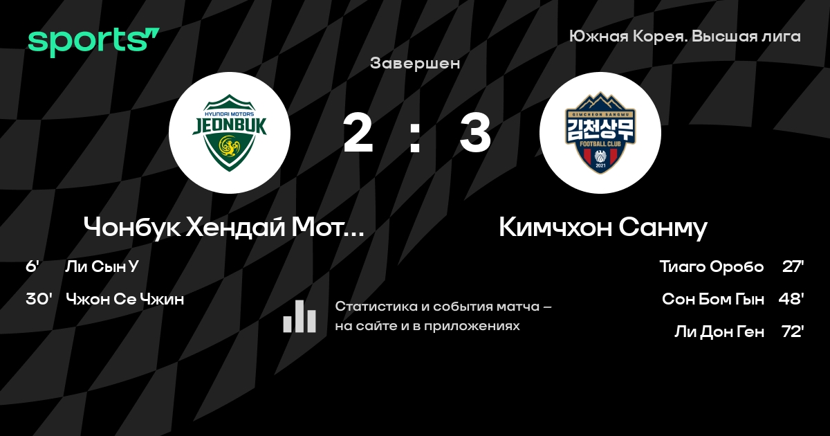 Чонбук Хендай Моторс – Кимчхон Санму: коэффициенты