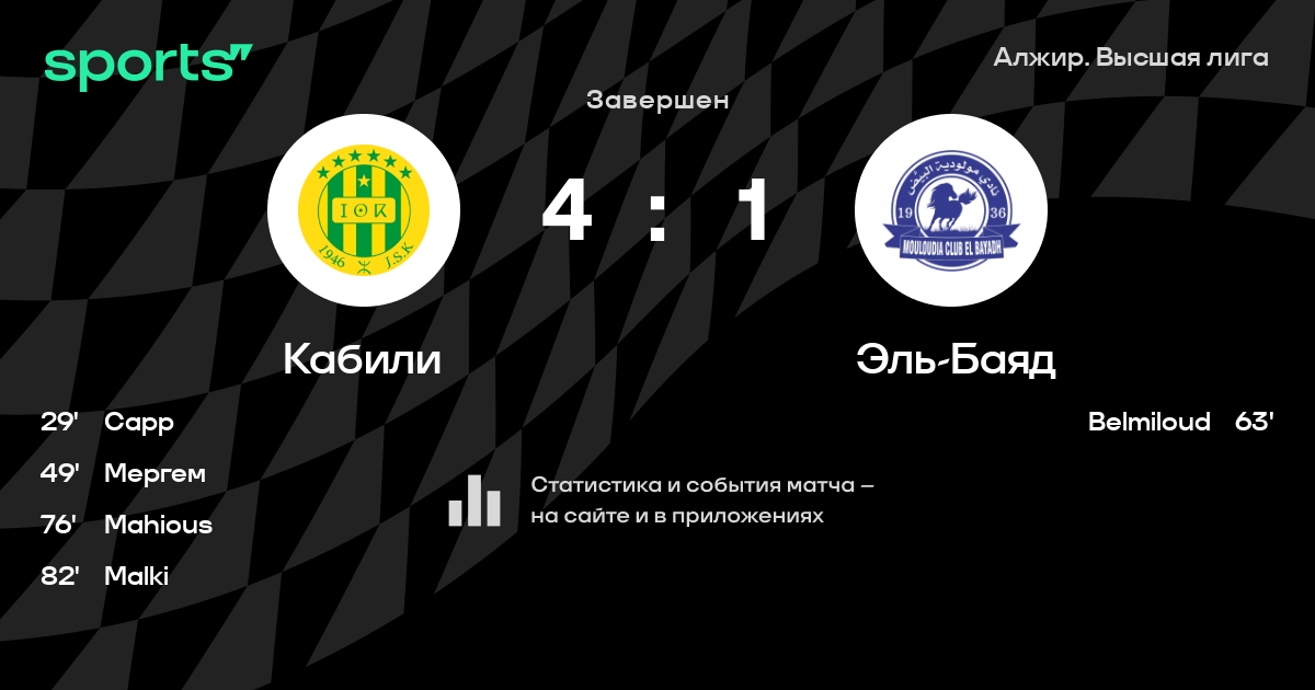 Кабили – Эль-Баяд: Кабили не проигрывает в 6 последних матчах против этого соперника