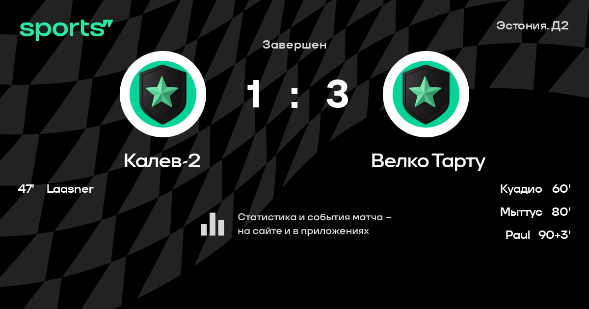 Калев-2 – Велко Тарту: Велко Тарту забивает в 9 последних матчах против этого соперника