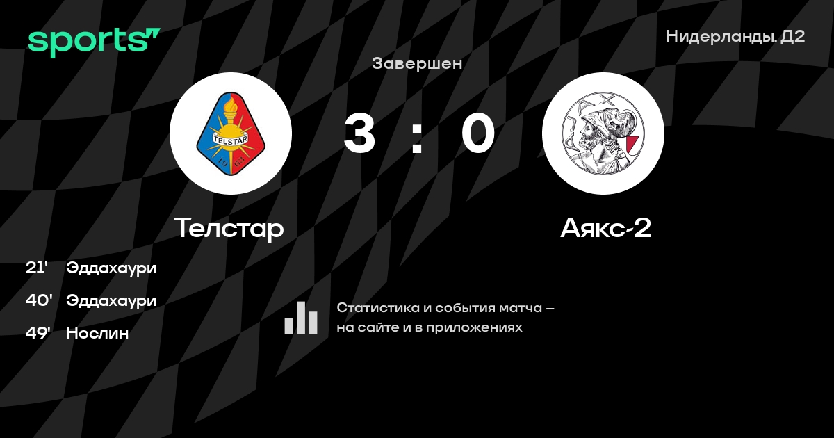 Результат прошлой игры в турнире «Первый дивизион»: Венло – Телстар 1:0. После 22 туров Телстар набирает 29 очков и занимает 12 место в турнире. Лучший бомбардир команды – Закария Эддахаури: он забил 15 в 24 матчах. В последних 5 играх Телстар забивает 4 голов. В последних 5 играх Телстар пропускает 9 голов.