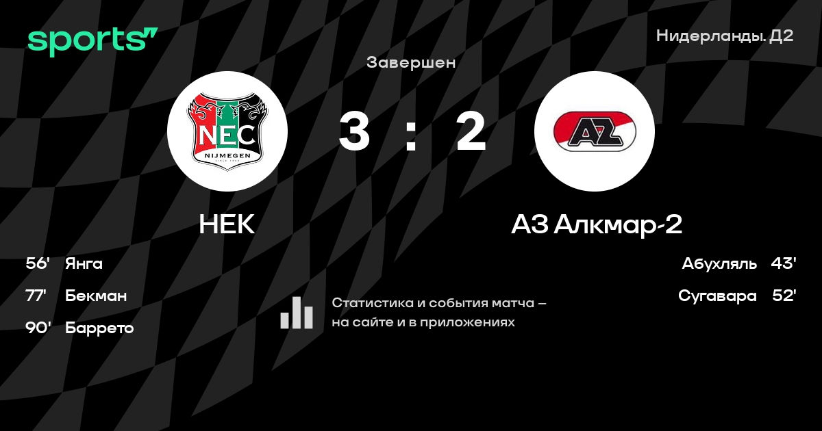 НЕК – АЗ Алкмар-2: НЕК не проигрывает в 5 из 6 последних матчей против этого соперника.