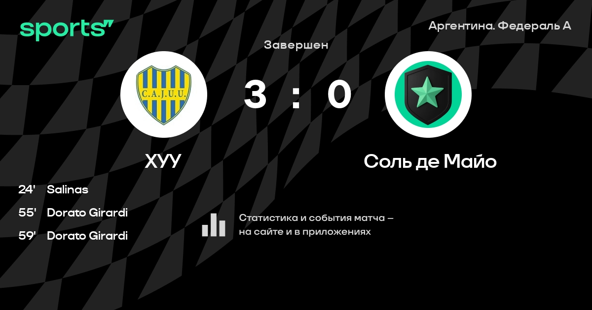 ХУУ – Соль де Майо: ХУУ не проигрывает в 5 из 7 последних матчей против этого соперника