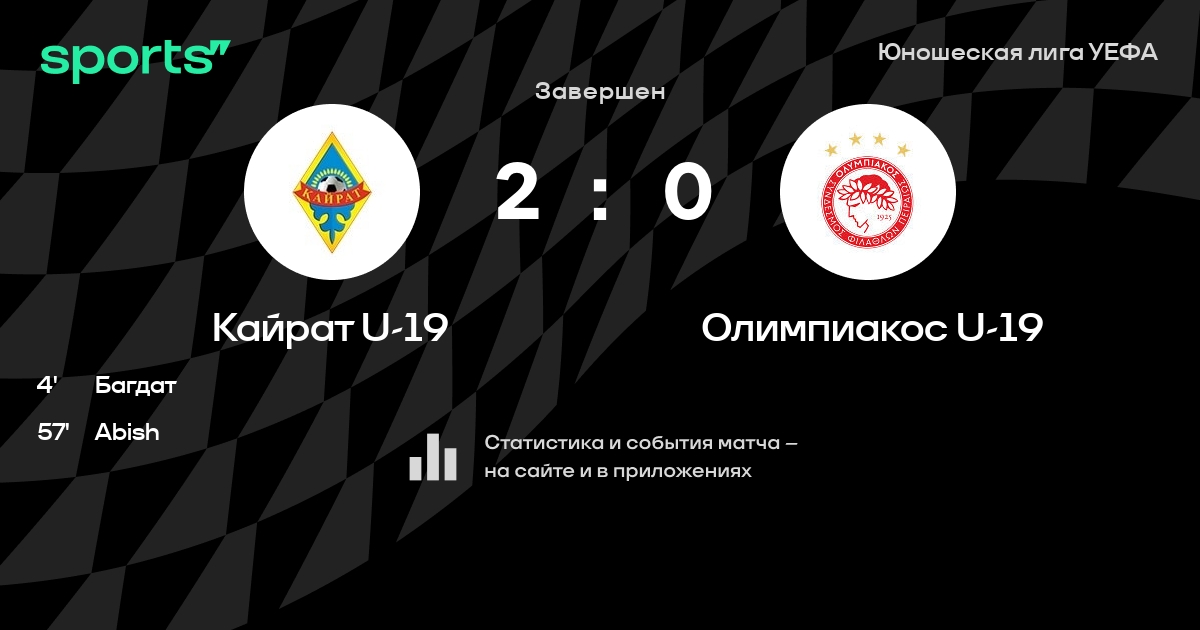 Кайрат U-19 - Олимпиакос U-19: статистика матча