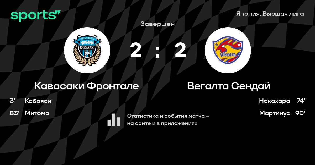 Кавасаки Фронтале – Вегалта Сендай: Кавасаки Фронтале забивает в 6 последних матчах против этого соперника