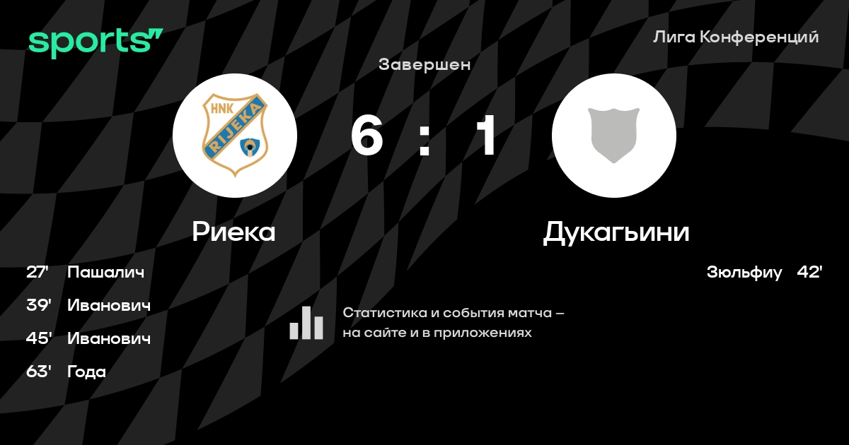 В последних 5 играх Риека забивает в среднем 2.20 гола за игру