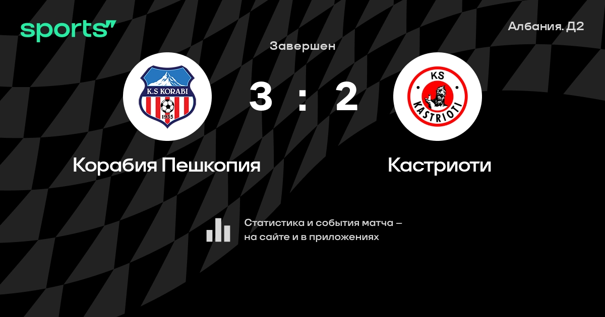 Результат прошлой игры в турнире «Первая лига»: Беса – Корабия Пешкопия 3:1. После 13 туров Корабия Пешкопия набирает 14 очков и занимает 9 место в турнире. Лучший бомбардир команды – Таулянт Марку: он забил 7 в 13 матчах. Корабия Пешкопия не может выиграть в 5 последних матчах в рамках турнира «Первая лига». В 6 последних матчах в турнире «Первая лига» Корабия Пешкопия обязательно забивает. Корабия Пешкопия пропускает в 5 последних матчах в турнире «Первая лига». В последних 5 играх Корабия Пешкопия забивает 8 голов. В последних 5 играх Корабия Пешкопия пропускает 13 голов.