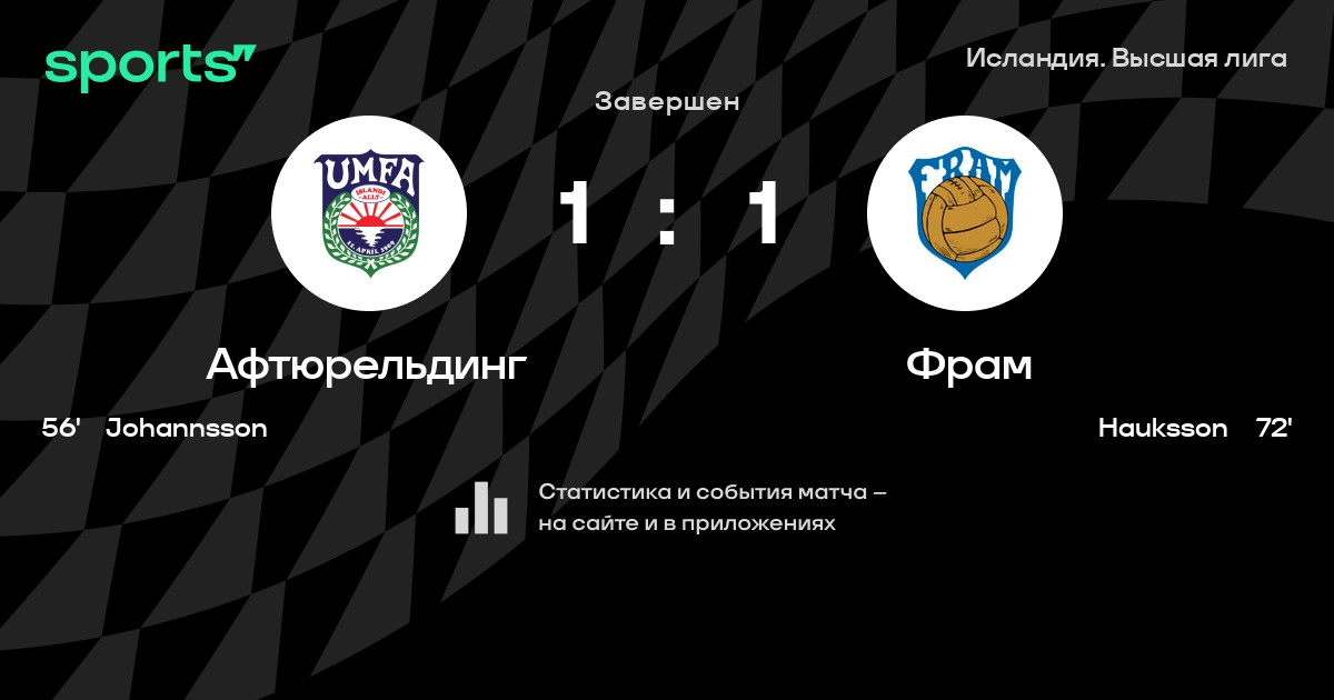 Результат прошлой игры в турнире «Высшая лига»: Афтюрельдинг – Брейдаблик 2:2. После 14 туров Афтюрельдинг набирает 18 очков и занимает 8 место в турнире. Лучший бомбардир команды – H. Magnússon: он забил 6 в 17 матчах. В 4 последних матчах в турнире «Высшая лига» Афтюрельдинг обязательно забивает. Афтюрельдинг пропускает в 4 последних матчах в турнире «Высшая лига». В последних 5 играх Афтюрельдинг забивает 9 голов. В последних 5 играх Афтюрельдинг пропускает 7 голов.