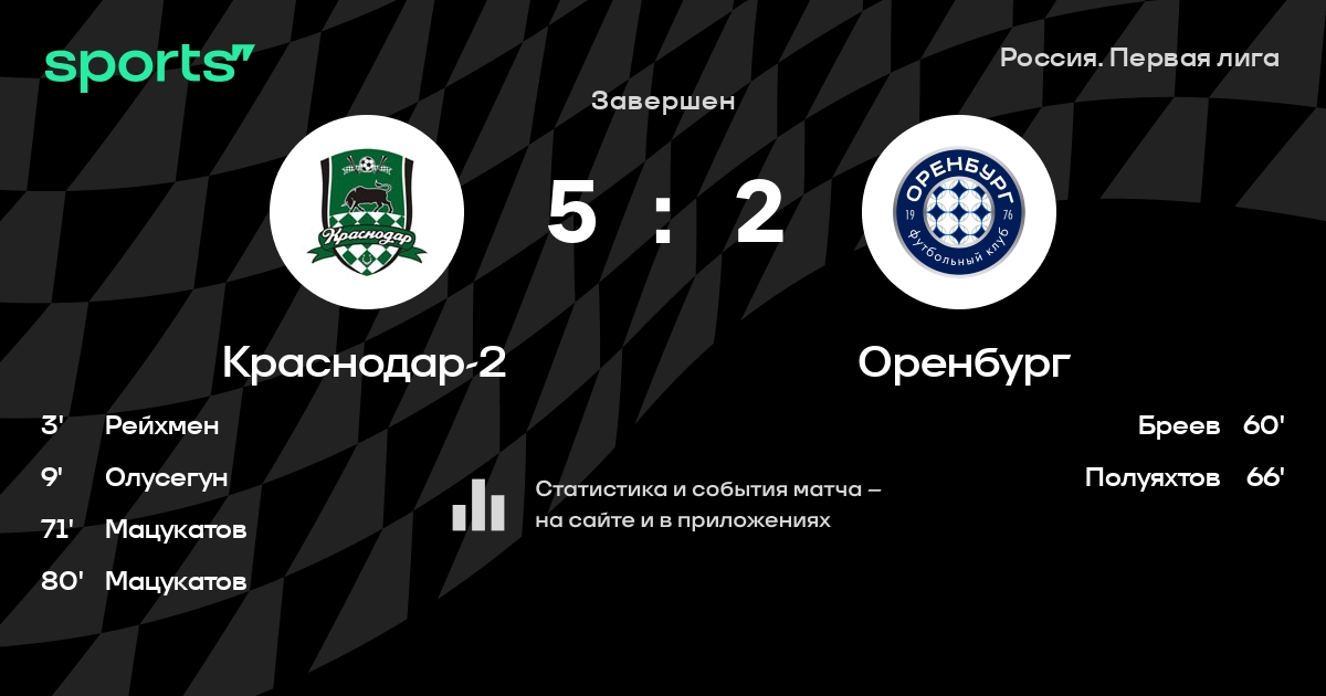 Краснодар-2 – Оренбург: коэффициенты