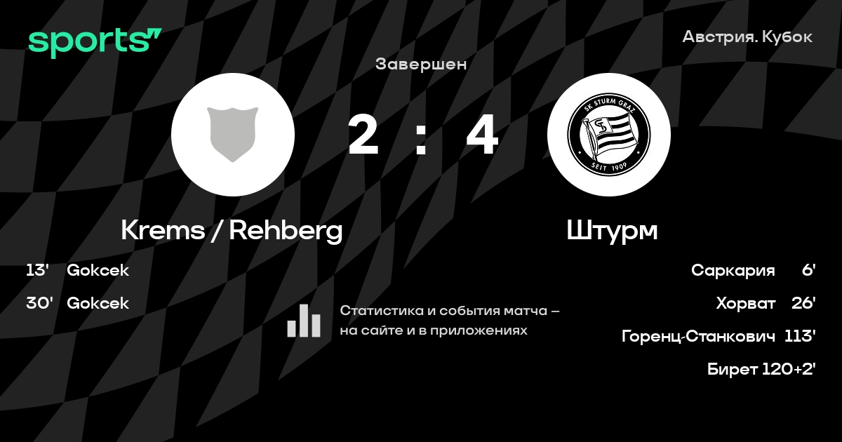 Штурм побеждает в 3 последних матчах в рамках турнира «Национальный кубок». В 3 последних матчах в турнире «Национальный кубок» Штурм обязательно забивает. В последних 5 играх Штурм забивает 5 голов. В последних 5 играх Штурм пропускает 13 голов.