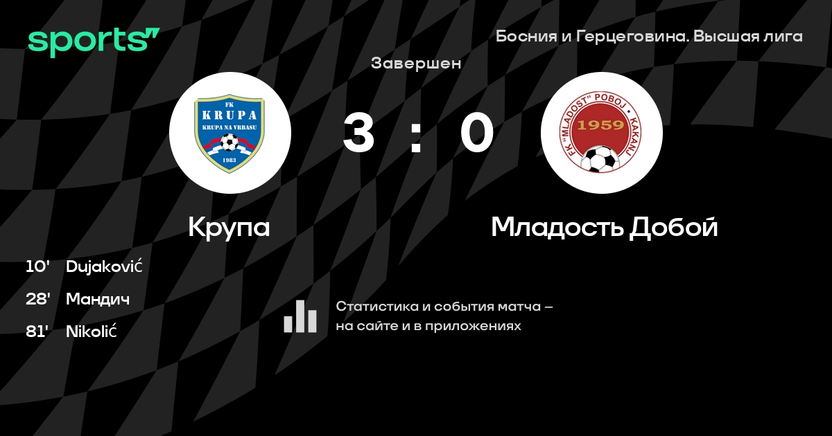 Крупа – Младость Добой: Младость Добой забивает в 7 последних матчах против этого соперника