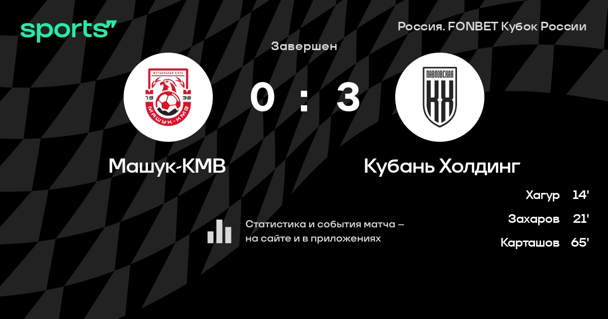 Результат прошлой игры в турнире «FONBET Кубок России»: Машук-КМВ – Спартак Нальчик 0:0 (4:2).