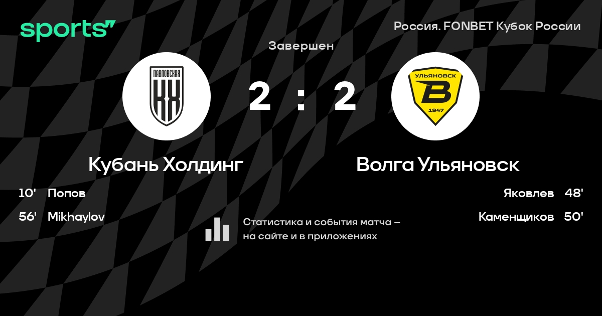 Кубань Холдинг – Волга Ульяновск: коэффициенты