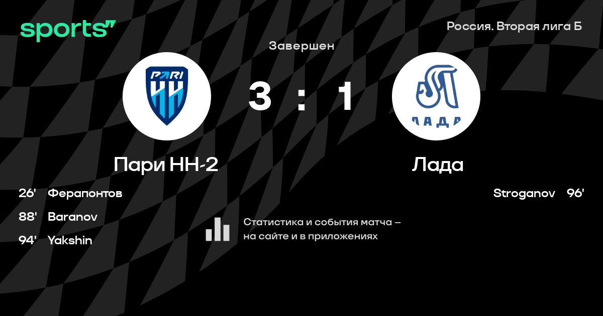 Результат прошлой игры в турнире «Вторая лига»: Оренбург-2 – Пари НН-2 1:1. После 23 туров Пари НН-2 набирает 16 очков и занимает 14 место в турнире. Лучший бомбардир команды – Дмитрий Калайда: он забил 5 в 12 матчах. Пари НН-2 не может выиграть в 7 последних матчах в рамках турнира «Вторая лига». Пари НН-2 пропускает в 12 последних матчах в турнире «Вторая лига». В последних 5 играх Пари НН-2 забивает 4 голов. В последних 5 играх Пари НН-2 пропускает 18 голов.