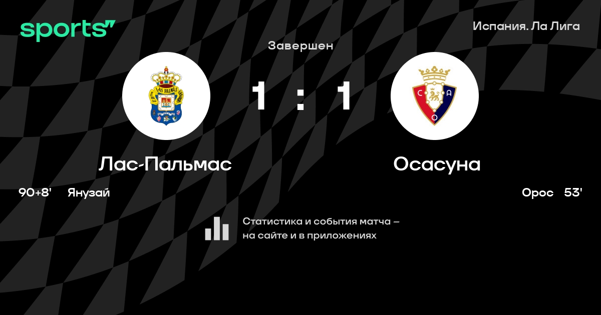 Результат прошлой игры в турнире «Ла Лига»: Осасуна – Райо Вальекано 1:1. После 20 туров Осасуна набирает 26 очков и занимает 10 место в турнире. Лучший бомбардир команды – Анте Будимир: он забил 13 в 23 матчах. Осасуна не может выиграть в 8 последних матчах в рамках турнира «Ла Лига». Осасуна пропускает в 3 последних матчах в турнире «Ла Лига». В последних 5 играх Осасуна забивает 7 голов. В последних 5 играх Осасуна пропускает 7 голов.