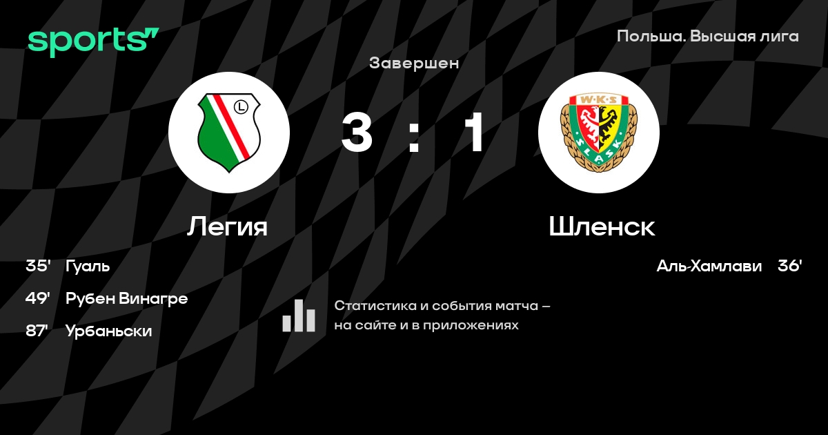Легия – Шленск: Легия не проигрывает в 5 из 7 последних матчей против этого соперника