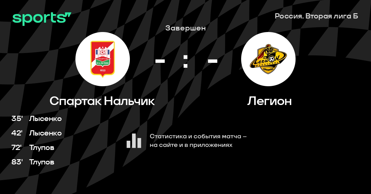Спартак Нальчик – Легион: Легион забивает в 4 последних матчах против этого соперника