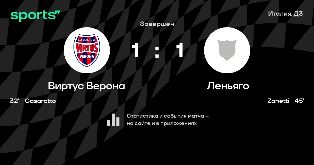 Виртус Верона – Леньяго: Леньяго забивает в 3 последних матчах против этого соперника