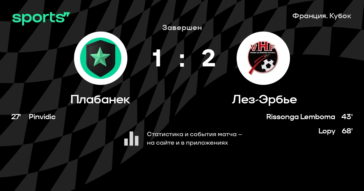Результат прошлой игры в турнире «Кубок Франции»: Пледран – Плабанек 0:2. В последних 5 играх Плабанек забивает 4 голов. В последних 5 играх Плабанек пропускает 6 голов.