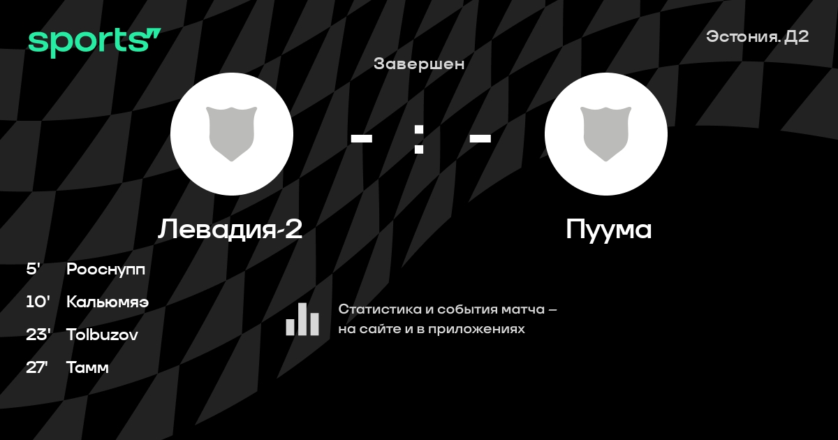 Тамме - Kaldoja, Makarov, Джумадил - Tolbuzov, Reinvald, Марин, Тамм, Кальюмяэ, Аалликко - РооснуппЗапасные: Heinola, Пеэтсон, Рохтла, Saarts, Прейман