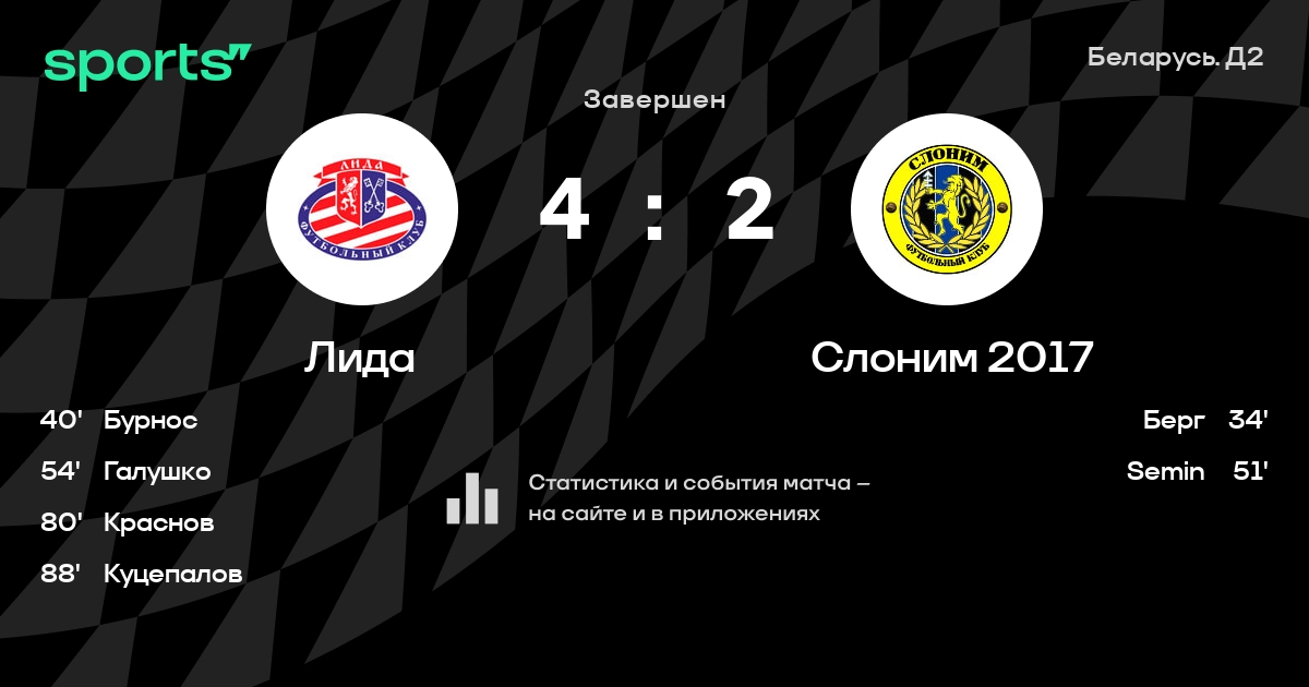 Результат прошлой игры в турнире «Первая лига»: Локомотив Гомель – Лида 1:0. После 22 туров Лида набирает 38 очков и занимает 6 место в турнире. Лучший бомбардир команды – Александр Бурнос: он забил 15 в 19 матчах. В последних 5 играх Лида забивает 9 голов. В последних 5 играх Лида пропускает 5 голов.