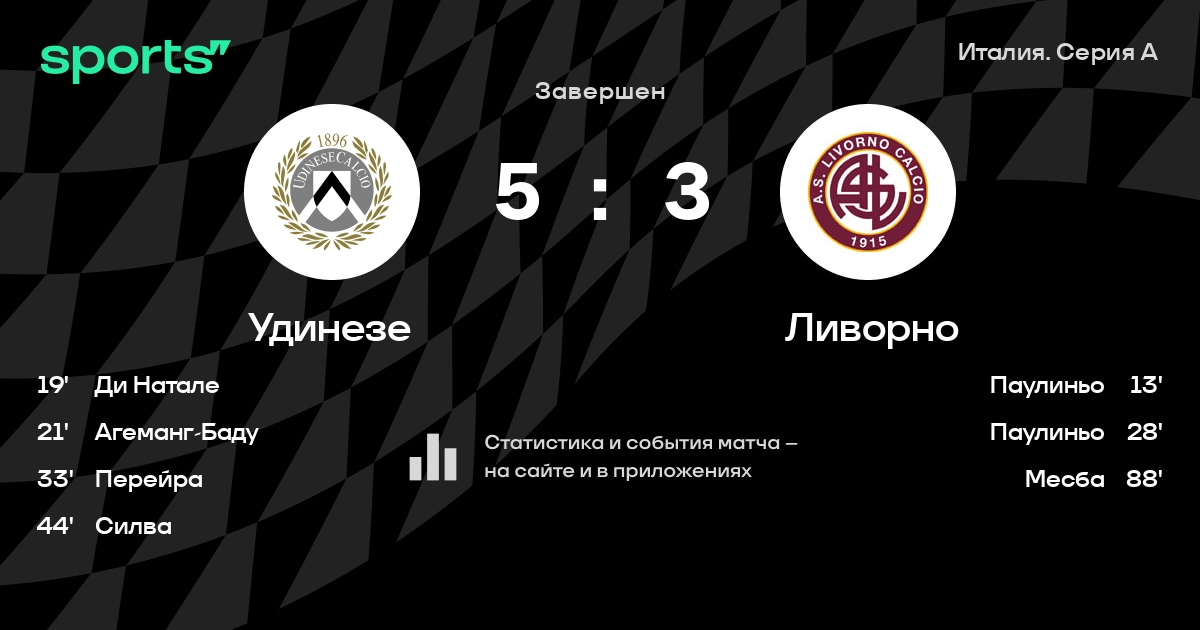 «Удинезе» – «Ливорно». Команды в первом тайме на двоих забили 7 мячей