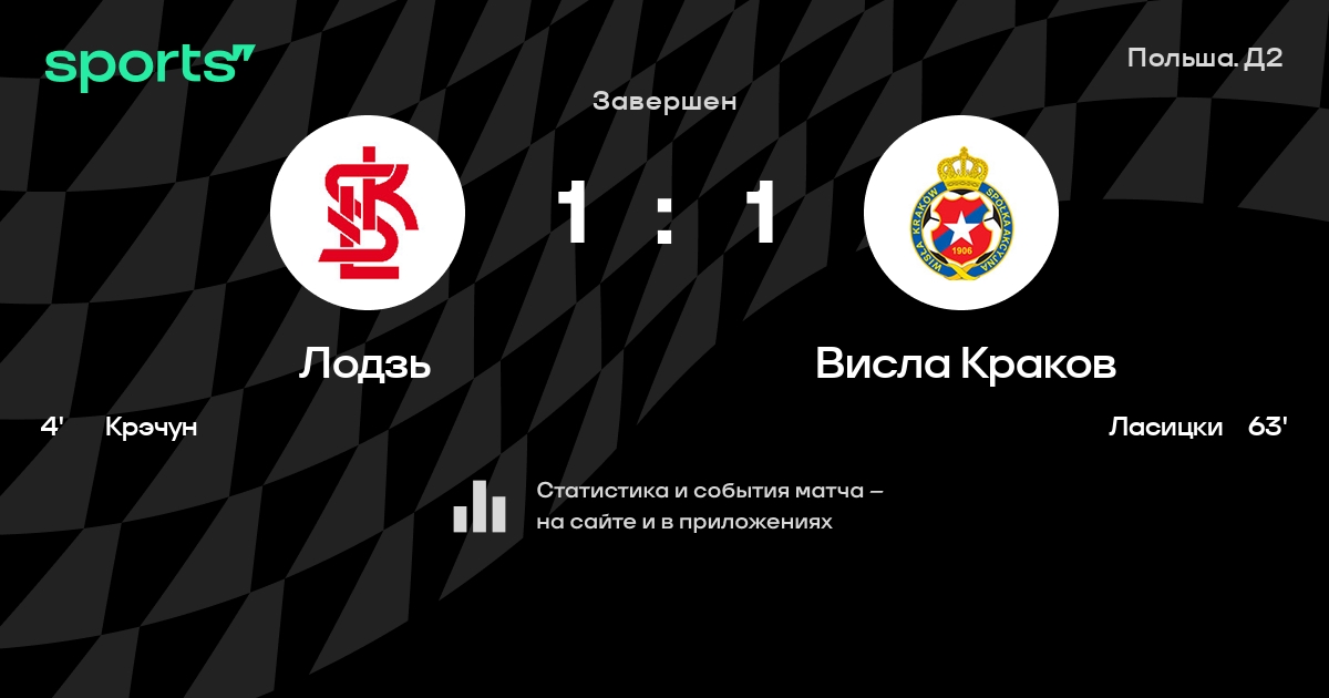 Результат прошлой игры в турнире «Первая лига»: Знич Прушкув – Лодзь 1:1. После 18 туров Лодзь набирает 25 очков и занимает 11 место в турнире. Лучший бомбардир команды – Матеуш Левандовски: он забил 6 в 16 матчах. Висла Краков имеет в активе больше всех побед в турнире – 13. Лодзь пропускает в 8 последних матчах в турнире «Первая лига». В последних 5 играх Лодзь забивает 6 голов. В последних 5 играх Лодзь пропускает 8 голов.