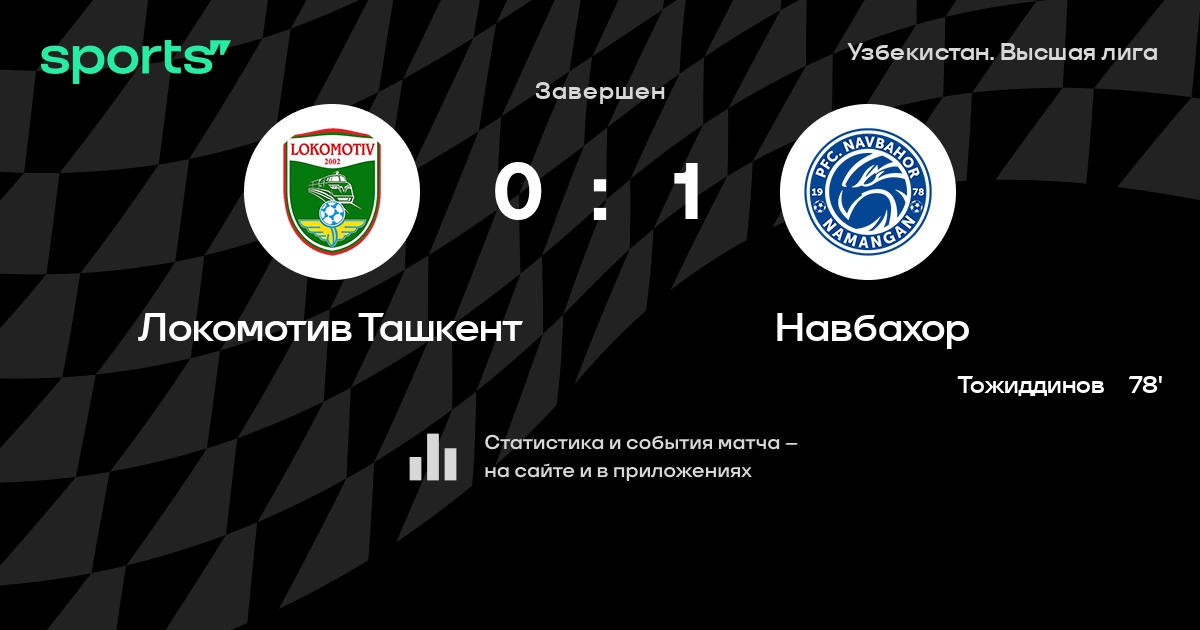 Результат прошлой игры в турнире «ПФЛ»: Андижан – Локомотив Ташкент 1:2. После 18 туров Локомотив Ташкент набирает 18 очков и занимает 12 место в турнире. Лучший бомбардир команды – S. Abdunabiyev: он забил 4 в 19 матчах. В 7 последних матчах в турнире «ПФЛ» Локомотив Ташкент обязательно забивает. Локомотив Ташкент пропускает в 14 последних матчах в турнире «ПФЛ». В последних 5 играх Локомотив Ташкент забивает 9 голов. В последних 5 играх Локомотив Ташкент пропускает 8 голов.
