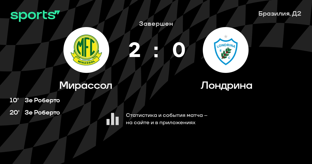 В последних 5 играх Мирассол пропускает в среднем 0.40 гола за игру