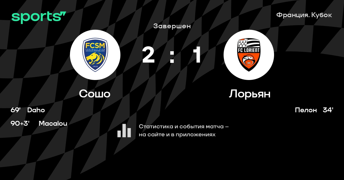Победа «Сошо» над «Лорьяном» в Кубке Франции упала с 4.60 до 2.80