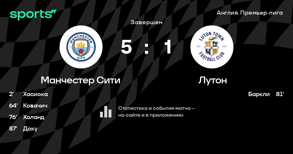 Трансляция Манчестер Сити - Лутон
