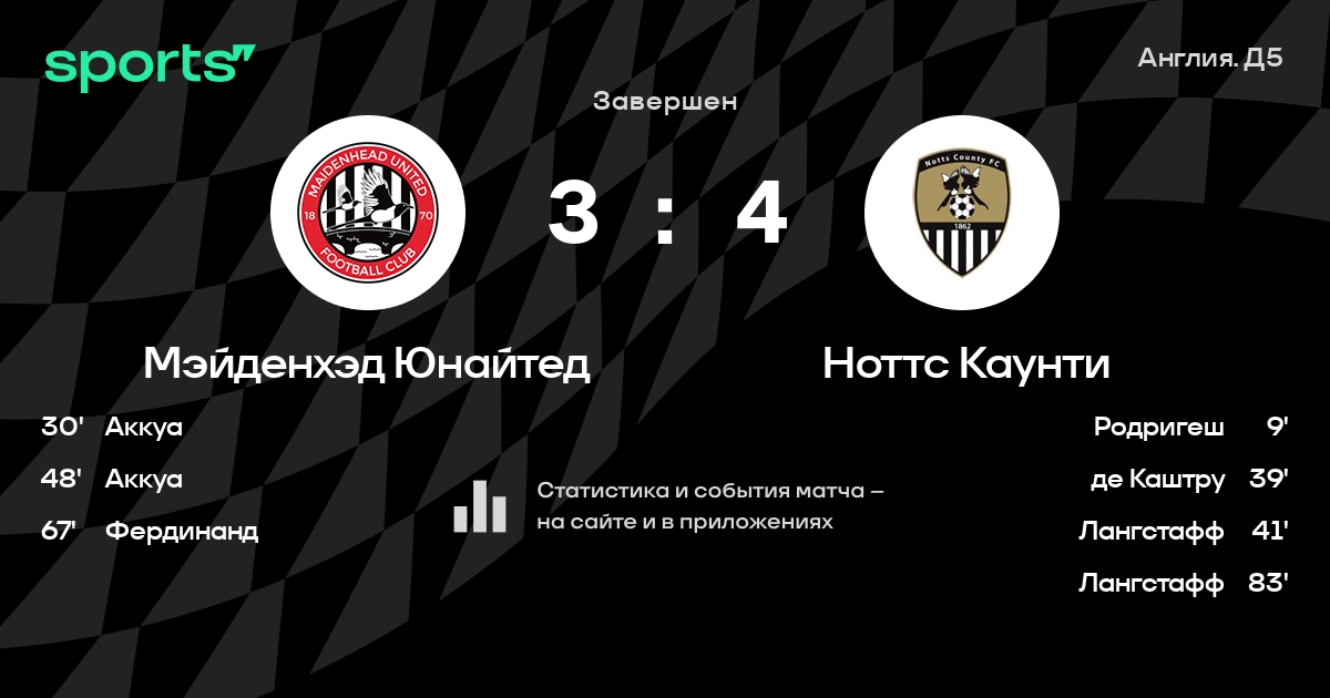 Мэйденхэд Юнайтед – Ноттс Каунти: Ноттс Каунти побеждает в 4 последних очных матчах