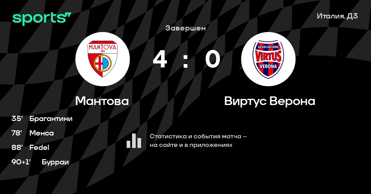 Мантова – Виртус Верона: Виртус Верона не проигрывает в 5 из 6 последних матчей против этого соперника в гостях