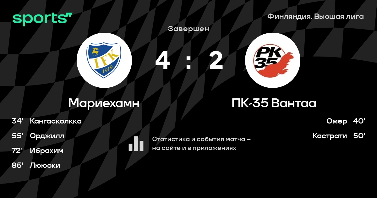 Виитала - Койола, Лююски, Гранлунд, Фриберг, Спаррдаль-Мантилла - Дафаа, Сид - Кангасколкка, Спэн, ОрджиллЗапасные: Нордквист, Виртанен, Экхали, Мякинен, Ибрахим