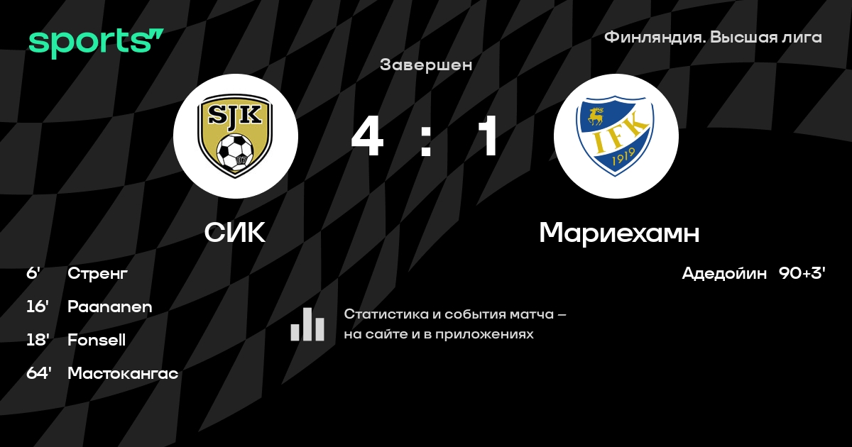 СИК – Мариехамн: СИК не проигрывает в 5 из 7 последних матчей против этого соперника