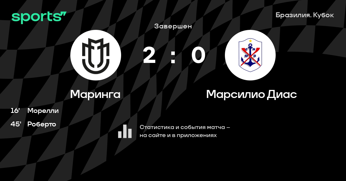 Результат прошлой игры в турнире «Кубок Бразилии»: Маринга – Сампайо Корреа 2:1. В последних 5 играх Маринга забивает 10 голов. В последних 5 играх Маринга пропускает 3 голов.