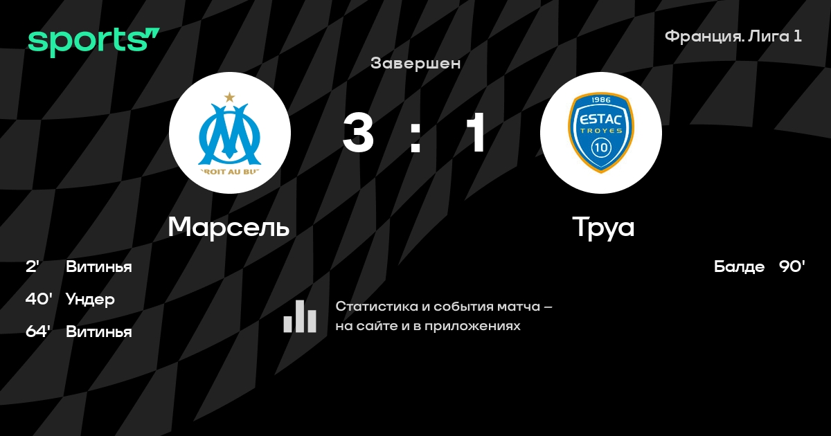 Чемпионат Франции. «Марсель» победил «Труа», «Монако» Головина обыграл «Лорьян»