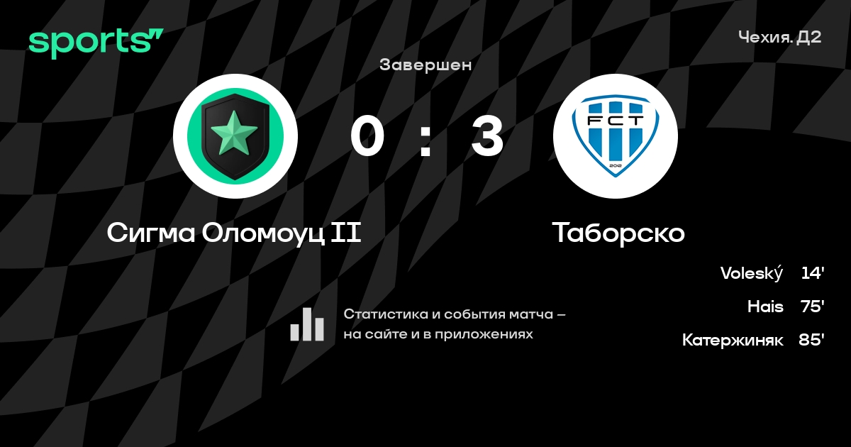 Сигма Оломоуц II – Таборско: Таборско не проигрывает в 6 из 7 последних матчей против этого соперника