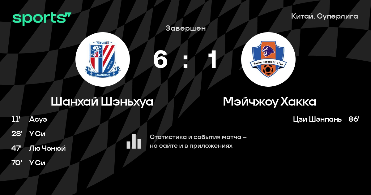 Шанхай Шэньхуа – Мэйчжоу Хакка: Шанхай Шэньхуа побеждает в 7 последних очных матчах