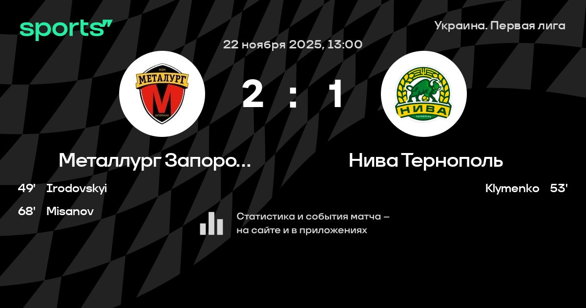 Металлург Запорожье – Нива Тернополь: Нива Тернополь забивает в 6 из 7 последних матчей против этого соперника