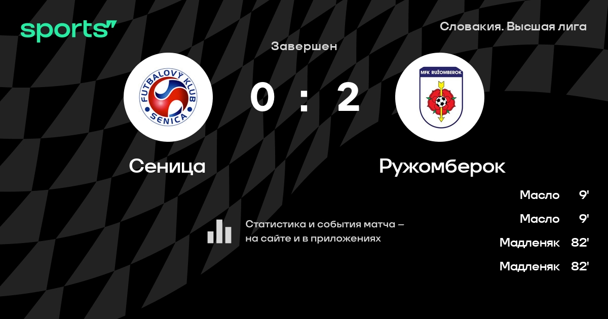 Результат прошлой игры в турнире «Словакия. Высшая лига»: Сеница – Земплин 1:1. После 11 туров Сеница набирает 14 очков и занимает 8 место в турнире. Лучший бомбардир команды – Элвис Сукиса: он забил 7 в 11 матчах. Сеница не может выиграть в 4 последних матчах в рамках турнира «Словакия. Высшая лига». Сеница пропускает в 4 последних матчах в турнире «Словакия. Высшая лига». В последних 5 играх Сеница забивает 8 голов. В последних 5 играх Сеница пропускает 9 голов.